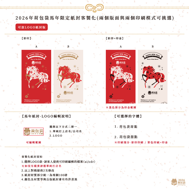 2026年荷包袋馬年限定紙封客製化100入
