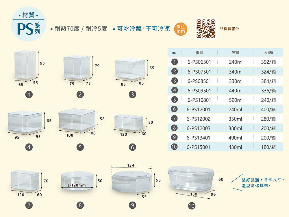 PS透明方盒【240ml】120x60x50mm 圓角 (400個/箱)_6-PS12001