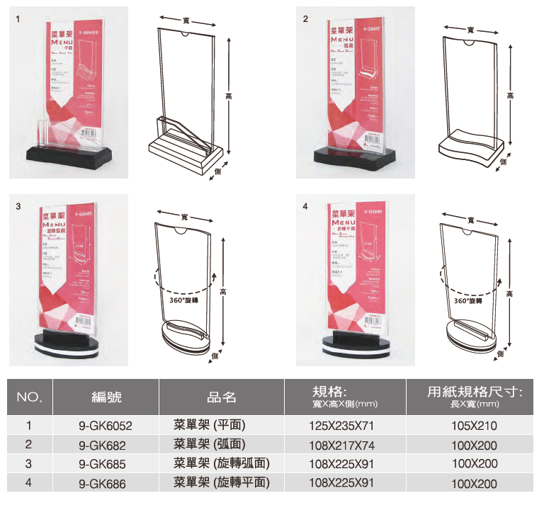 旋轉式菜單架 (單入裝)