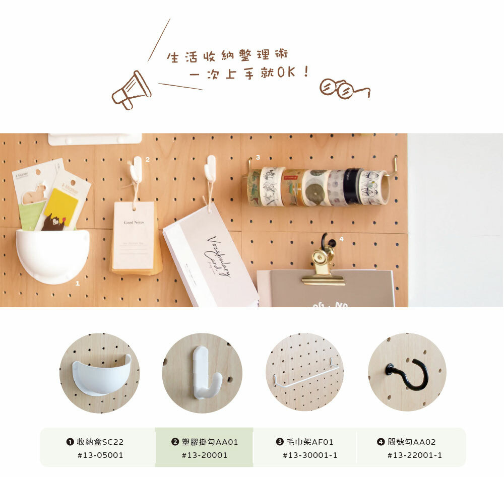 玩丸圓圈板 洞洞板配件 塑膠掛勾AA01 (2入/盒)【共2色】