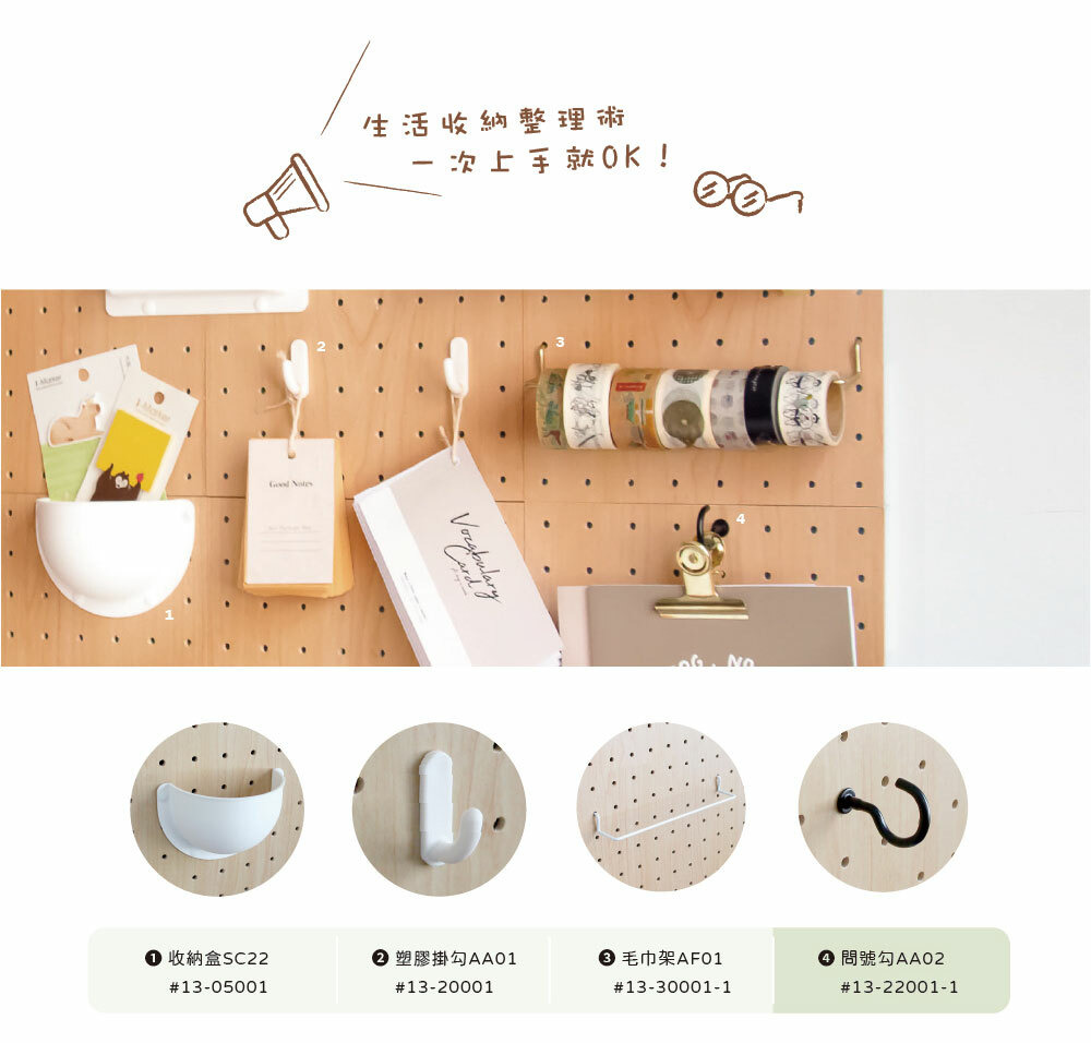 玩丸圓圈板 洞洞板配件 問號勾AA02 (2入/盒)【共2色】