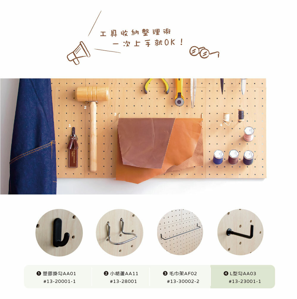 玩丸圓圈板 洞洞板配件 L型勾AA03 (2入/盒)【共2色】