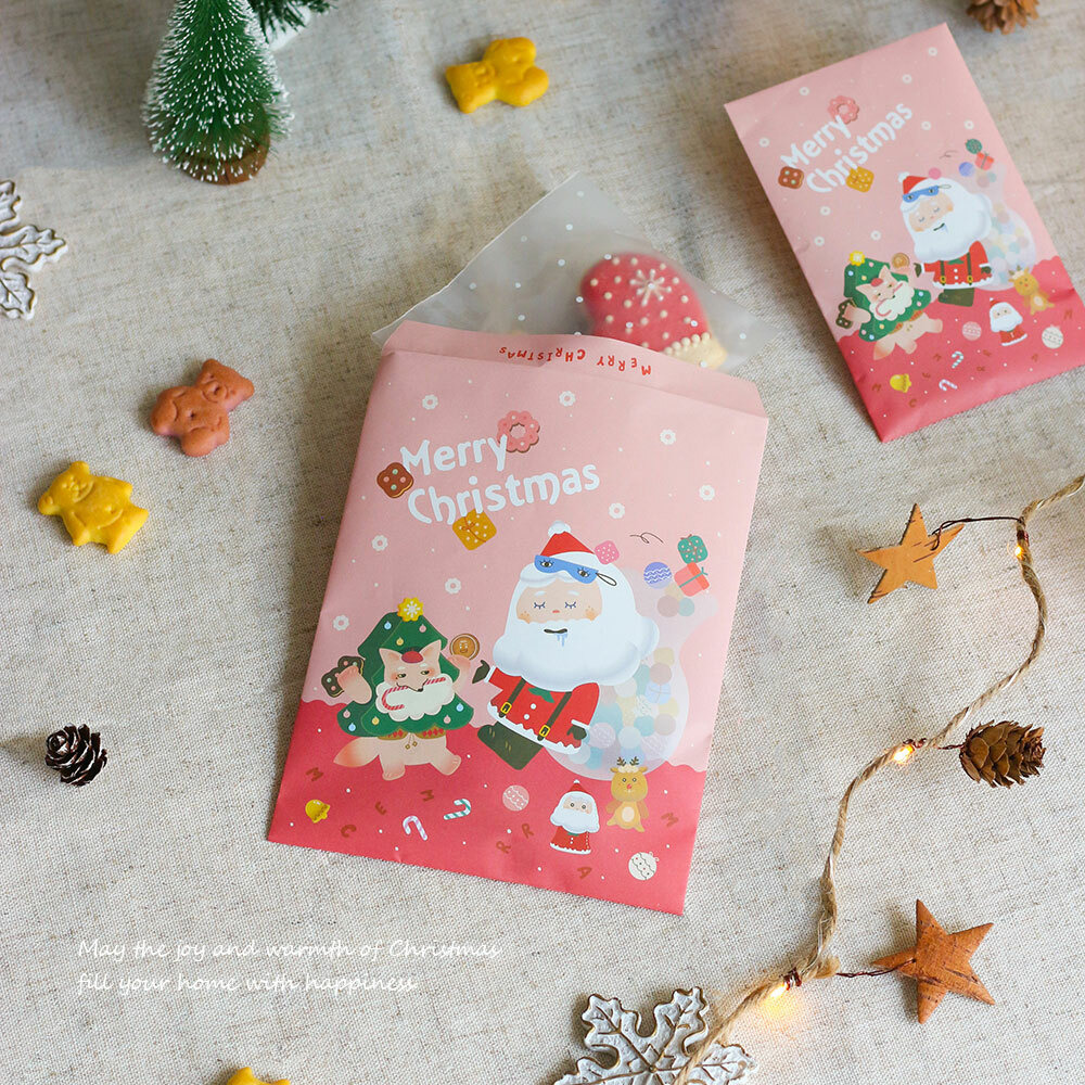 平口紙袋 信封型 聖誕泡泡糖-粉 (100入)