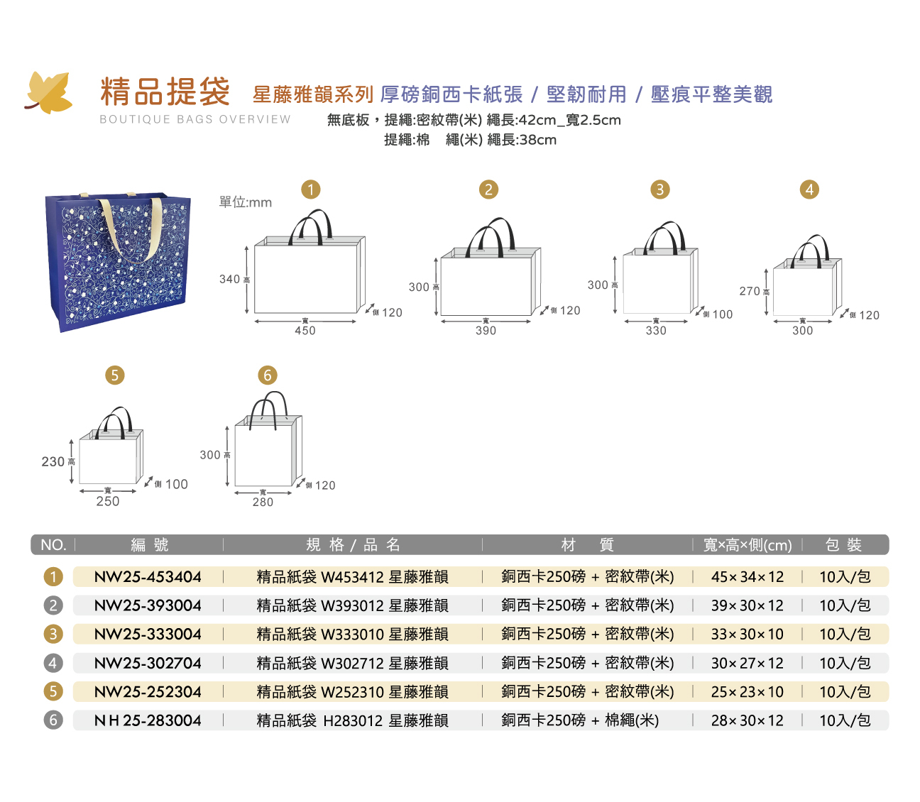 厚磅|精品紙袋 W252310 星藤雅韻 寬25高23側10cm (10入)_NW25-252304