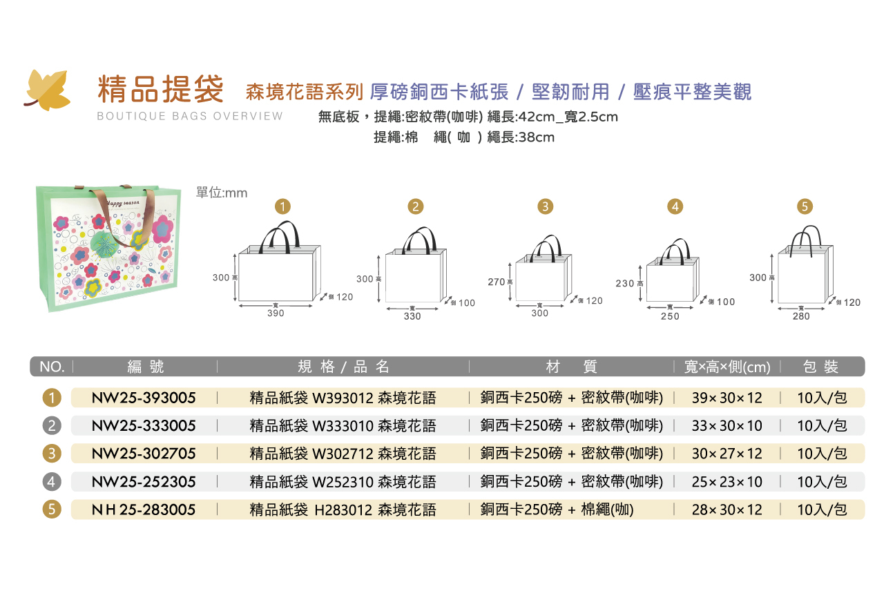 厚磅|精品紙袋 W302712 森境花語 約寬30高27側12cm (10入)_NW25-302705